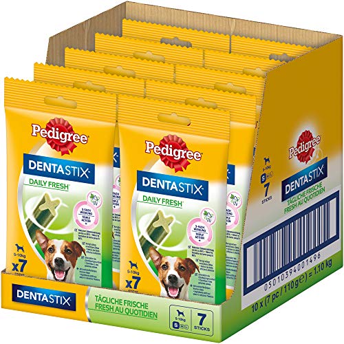 Pedigree DentaStix Daily Fresh Zahnpflegesnack für kleine Hunde – Hundeleckerli mit Aktivwirkstoffen für jeden Tag – Für gesunde Zähne und einen frischen Atem – 70 Sticks (10 x 7 Stück)