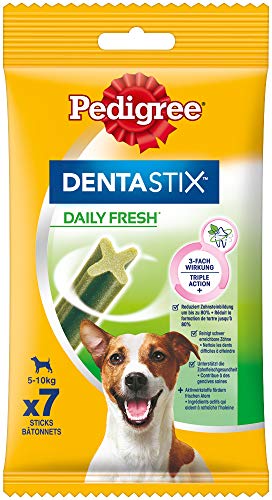 - Lieferumfang: 10 x 7 Pedigree DentaStix Fresh für kleine Hunde / Unterstützt die simple Zahnreinigung / Verringert nachweislich den Mundgeruch / Ergänzungsfuttermittel für Hunde ab 4 Monaten