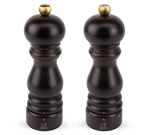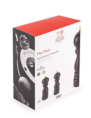 - Lieferumfang: 1x Peugeot Paris 2-teiliges Gewürzmühlen-Set, 1x Salzmühle, inkl. Meersalz (8 g), Farbe: Schokoladen-Braun, 1x Pfeffermühle inkl. Pfeffer (4 g), Farbe: Schokoladen-Braun, Höhe je: 18 cm, Material: Holz, Gewicht je: 590 g, 2/23461