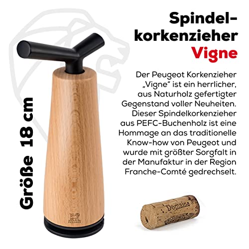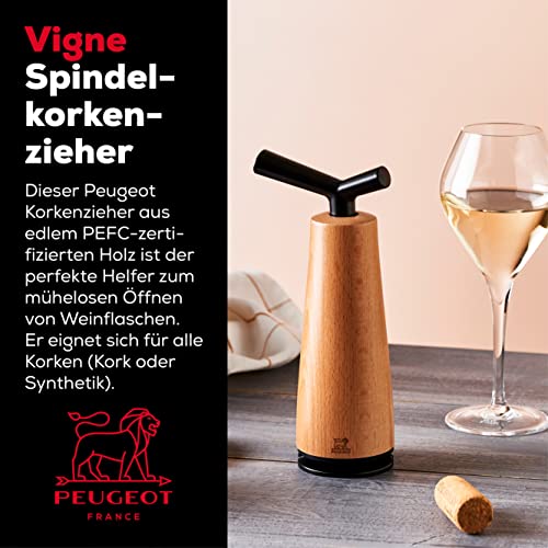 Einzelheiten: Produktbeschreibung Peugeot Spindelkorkenzieher Vigne 18 cm Natur I Manueller Wein-Korkenzieher aus PEFC-zertifiziertem Buchenholz I Weinzubehör mit patentiertem Korkauswurfsystem I Hergestellt in Frankreich Set enthält: 1