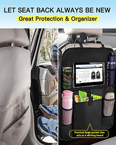 PewinGo Rückenlehnenschutz Auto Kinder, Rücksitz Organizer, Kick-Matten 600D Oxford-Tuch Wasserdicht und Pflegeleicht, 12″Touchscreen-Tablet-Halter, mit Mehrzweckhaken und Tüchern,2022-Upgrade