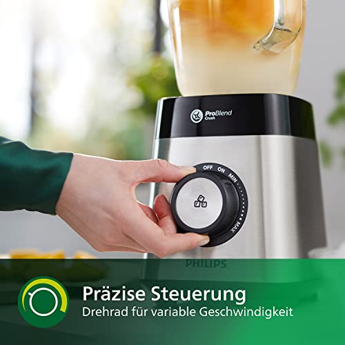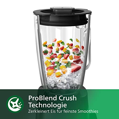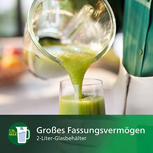 Philips Blender kielichowy oraz blender do smoothie – 1000 W, Szklany dzbanek 2 l, Aplikacja z przepisami, Płynna regulacja prędkości, Technologia ProBlend Crush (HR3573/90)