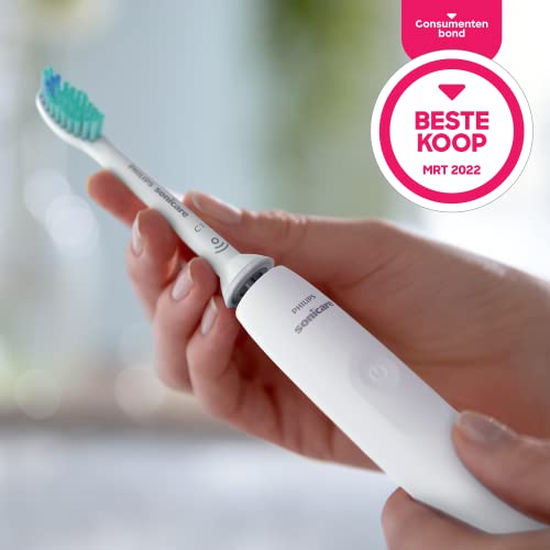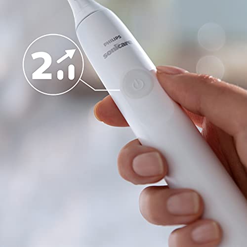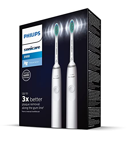 Philips Sonicare 3100, elektryczna soniczna szczoteczka do zębów z czujnikiem siły nacisku i zegarem programowanym, kolor biały, dwie sztuki, model HX
