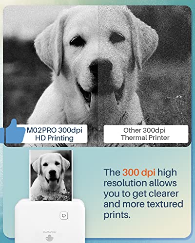 Phomemo M02 Pro 300 DPI mini drukarka kieszonkowa, termiczna drukarka fotograficzna, do telefonów komórkowych, drukarek naklejek, kompatybilna z papierem 15,25,53 mm, do systemów iOS i Android, idealna do dziennika, druku zdjęć, pracy, memo – biała