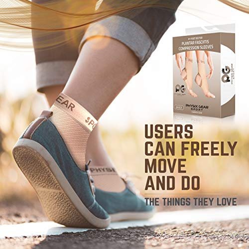 Physix Gear Sport Fascite plantare bandaż na śródstopie, wsparcie sklepienia stopy, skarpety Fascite plantare, beżowe, L/XL