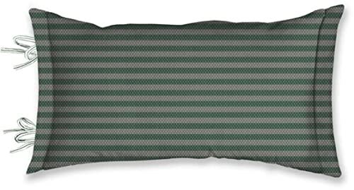 • Tylna strona jest poziomo jasnozielono-ciemnozielone paski. Po bokach poduszka jest wyposażona w pikowane obramowanie Oxford, co nadaje jej szlachetny wygląd. Dzięki wyjątkowemu zamknięciu na kokardkę poduszka może być używana z obu stron.