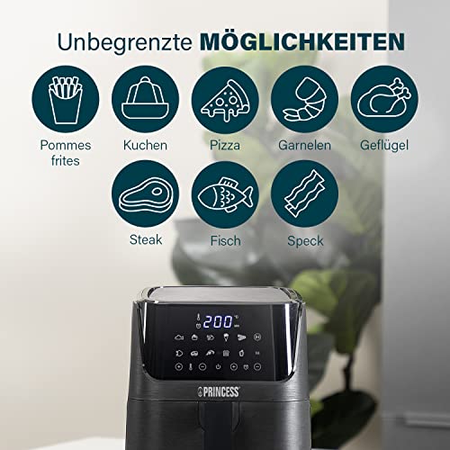Princess Airfryer cyfrowy 182031 – Książka z przepisami w zestawie – 11 programów – 3,5 l – 1350 W, czarny