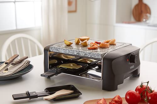 Princess Raclette Grill für bis zu 4 Personen – mit Steingrill und regelbarer Heizstufen, 600 Watt, Schwarz, 162810