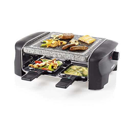 • Die Steingrill/Raclette-Kombination hat die perfekte Größe für ein gemütliches Abendessen mit 2 bis 4 Personen