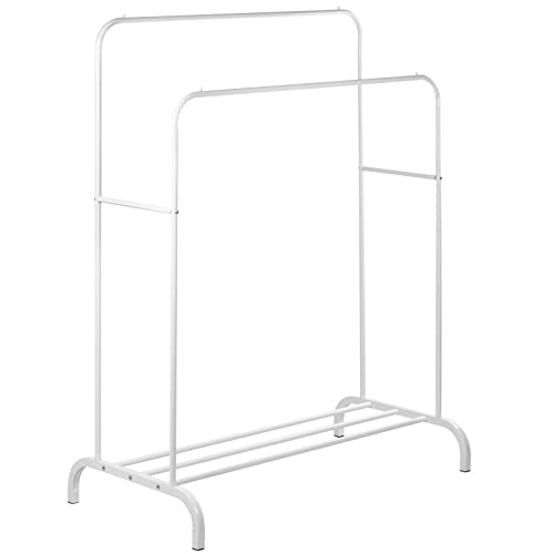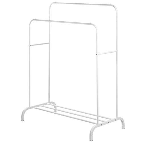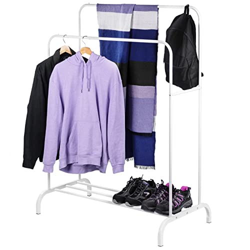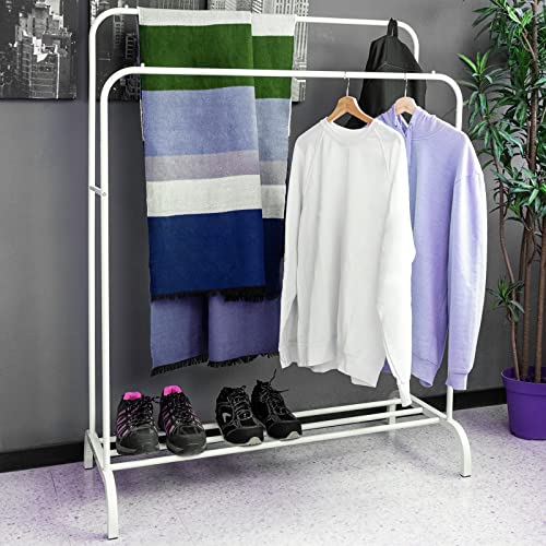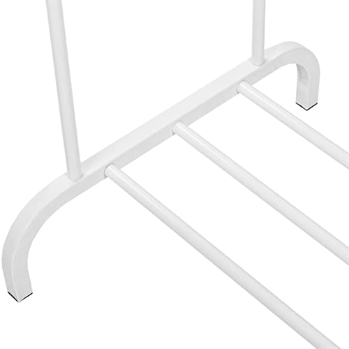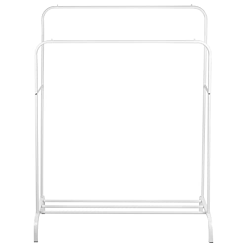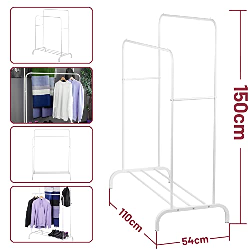 PrixPrime – Biały metalowy wieszak na ubrania z podwójnym prętem i wieszakiem na buty