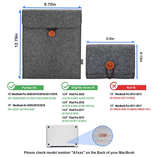 ProCase Futerał filcowy z organizerem na akcesoria do 13 cali, tablet jak MacBook Pro/Air 13 2016/2017/2018/2019/2020 A1932/A2159/A2179, etui na iPad Pro 1 2,9 2 018/2020 – czarny