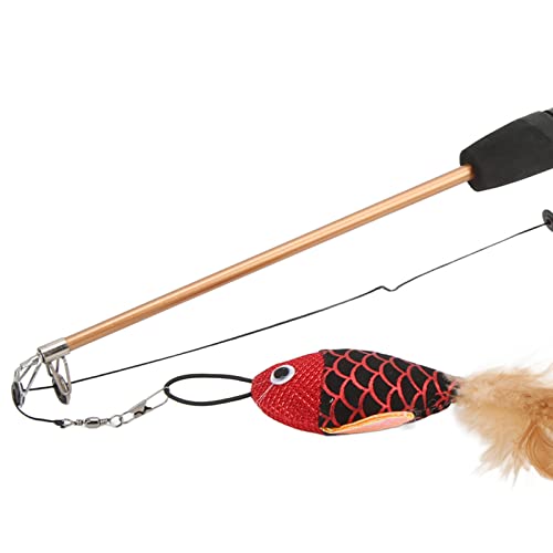 Koło pasowe Teleskopowa wędka Zabawka dla kota, Wędka Zabawka dla kota Bezpieczna w użyciu Ręczna konstrukcja kołowrotka Realistyczna konstrukcja ryby Trwały materiał bawełniany do gryzienia Czerwona