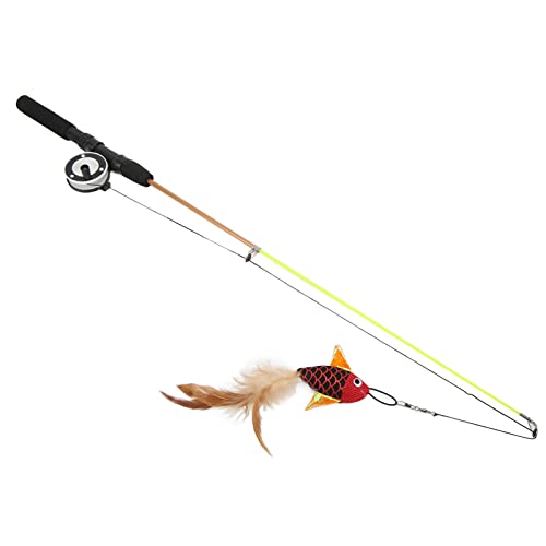 Koło pasowe Teleskopowa wędka Zabawka dla kota, Wędka Zabawka dla kota Bezpieczna w użyciu Ręczna konstrukcja kołowrotka Realistyczna konstrukcja ryby
