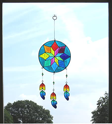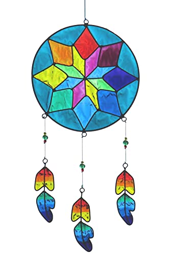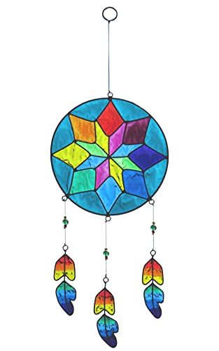 ✅ Wielobarwny łapacz słońca: Wielobarwny łapacz słońca zaprojektowany w stylu tradycyjnych łapaczy snów rdzennych Amerykanów, reprezentujący krążek, aby złapać złe sny i wiszące pióra.
