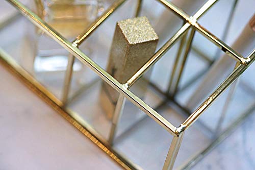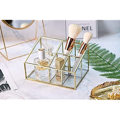 PuTwo Przechowywanie pędzli do makijażu, 5 przegródek, w stylu vintage, złoty z metalu i szkła, organizer na kosmetyki, organizer na lakiery do paznokci, szminki, pędzle kosmetyczne
