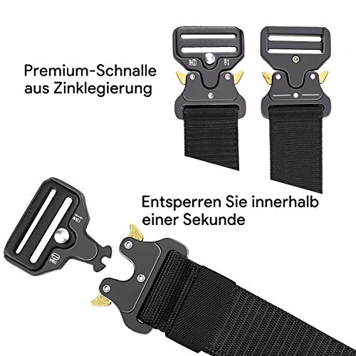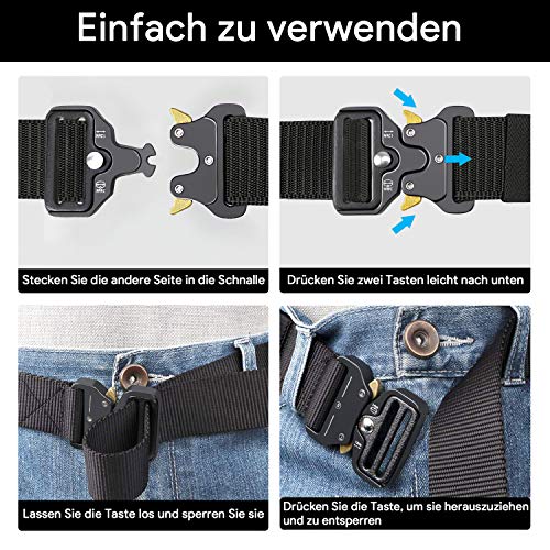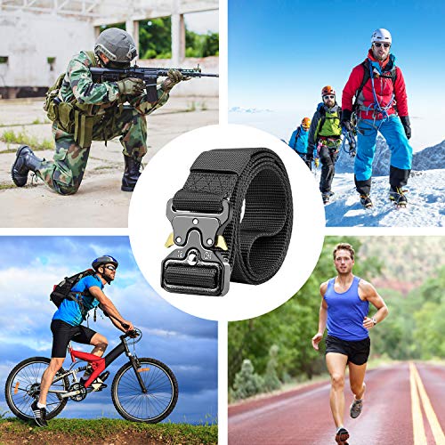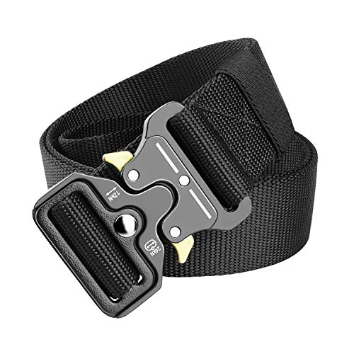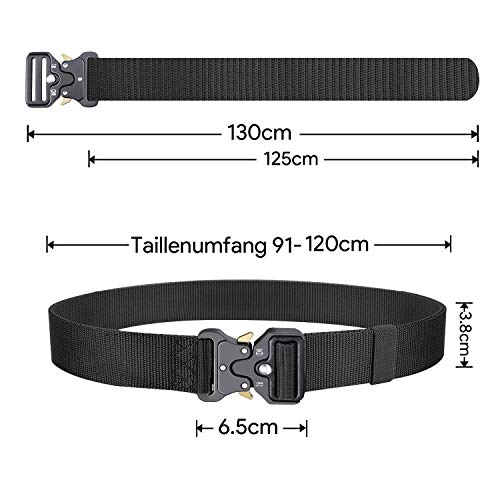 Qhui Pasek taktyczny, męski z nylonu wojskowego, szybkie zapięcie, metalowa klamra, pasek z klamrą do czajnika, do uprawiania sportów na świeżym powietrzu, na kemping, 130 x 3,8 cm