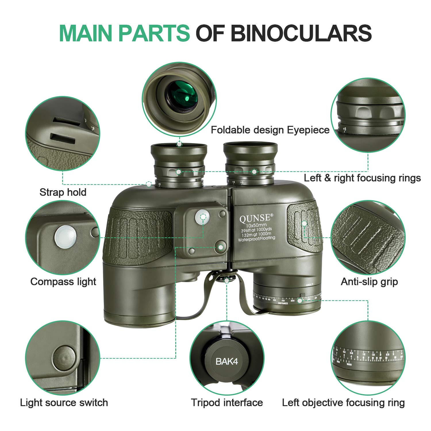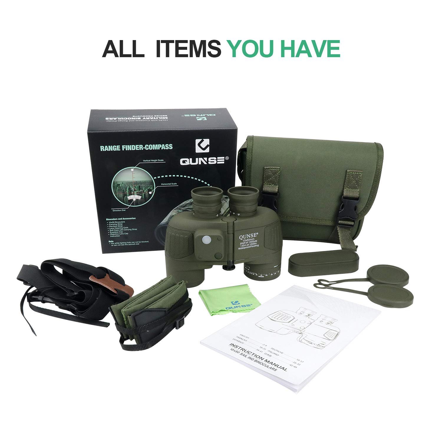 X25 Kompas i dalmierz, 10 x 50 mm, duże soczewki, wojskowy, nawigacja HD, lornetka, szerokie pole widzenia z systemem pryzmatu BAK4 i paskiem uprzęży, wodoodporny i odporny na zaparowanie