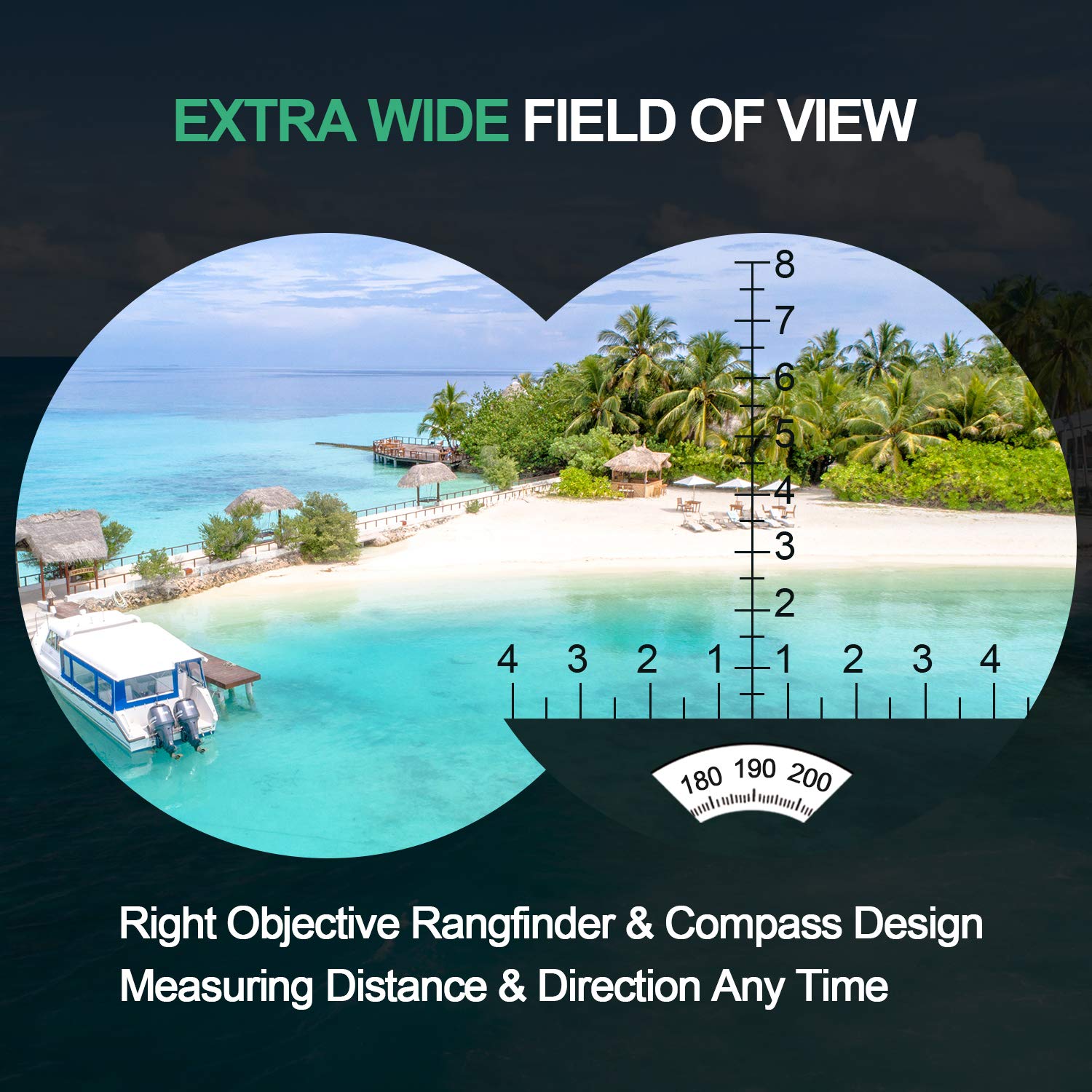✅ Kompas nawigacyjny i: Kompas nawigacyjny i dalmierz – dzięki wbudowanej linijce i kompasowi orientacyjnemu można bezpośrednio obliczyć odległość obiektu na skali w lewym okularze, odczytując dane z linijki. Wbudowany, naświetlający kompas orientacyjny może mierzyć i obliczać azymut ( umożliwia podświetlenie linijki wewnę