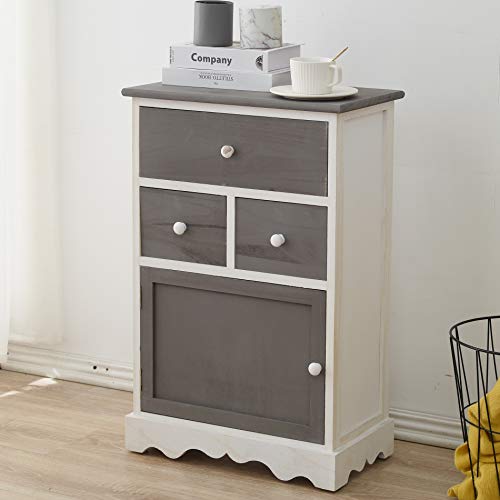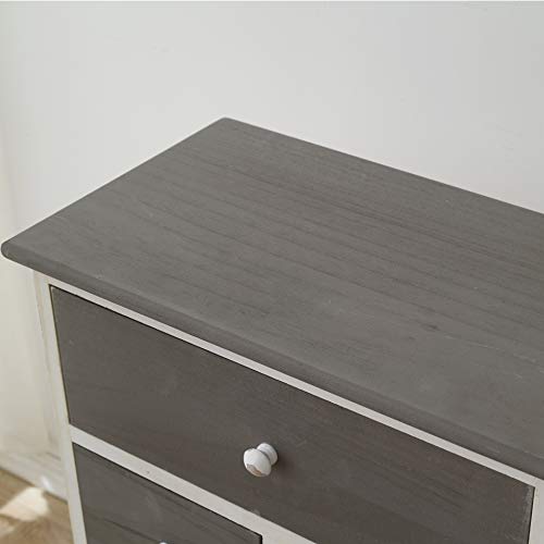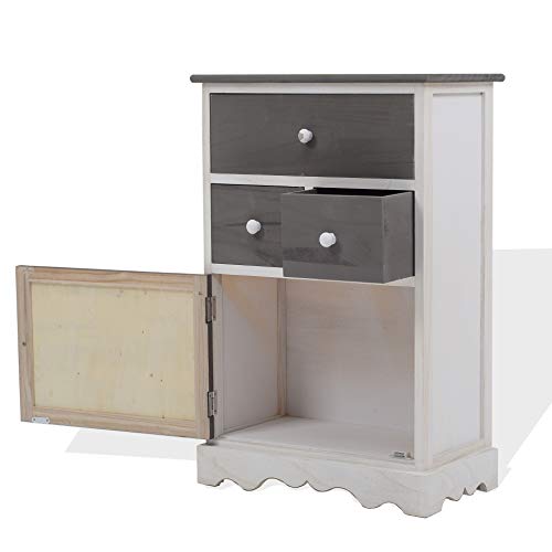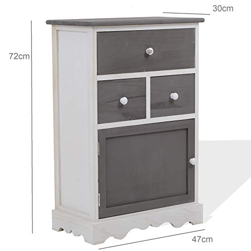 Rebecca Mobili Schubladenschrank in Weiß und Grau, Highboard mit 3 Schubladen, Paulownienholz, im Vintage-Stil, als Einrictung für küche Bad Flur – Maße: 72 x 47 x 33 cm (HxLxB) – Art. RE4327