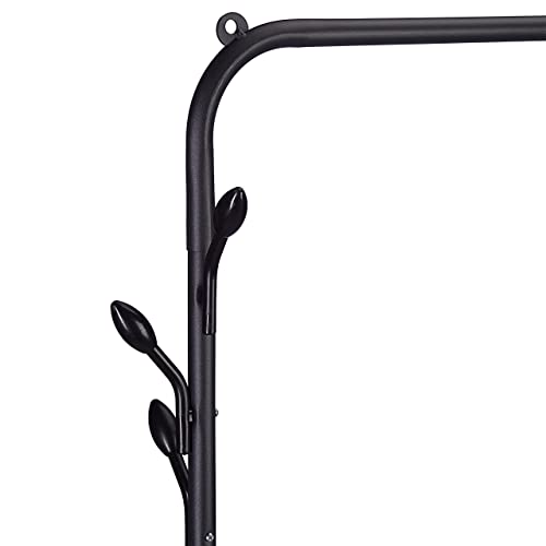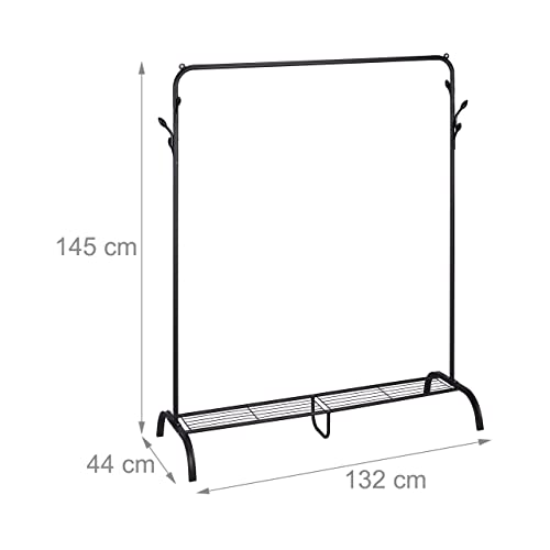 Relaxdays Wieszak na ubrania metalowy, półka, 6 haczyków, drążek na ubrania do sypialni, wys. x szer. x gł.: 145x132x44 cm, wolnostojący, czarny
