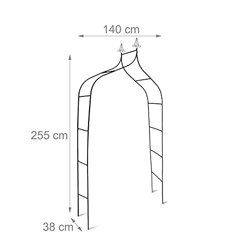Relaxdays Rosenbogen Metall, wetterfest, romantischer Rankenbogen, Deko-Spitzen, HxBxT 255 x 140 x 38 cm, dunkelgrün