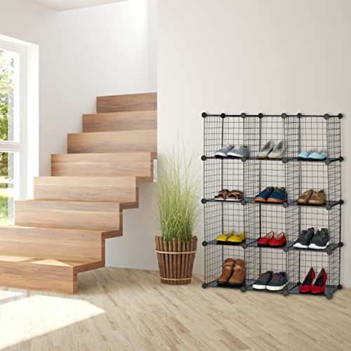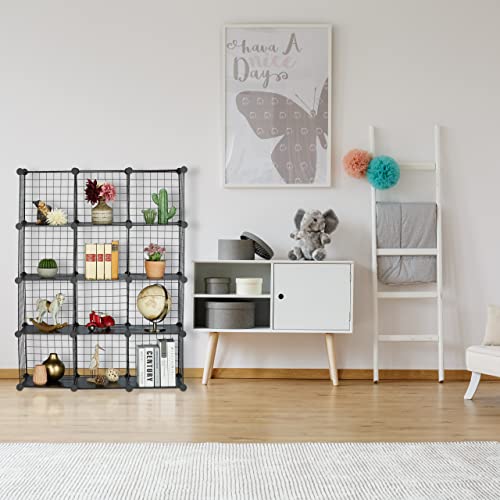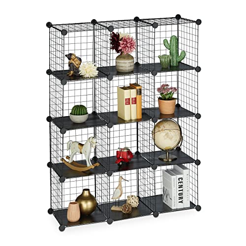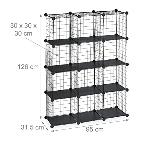 Relaxdays Regał wtykowy z siatki drucianej, 12 przegródek, system regałów, kostka, wkładka z tworzywa sztucznego, wys. x szer. x gł.: 126 x 95 x 31,5 cm, czarny