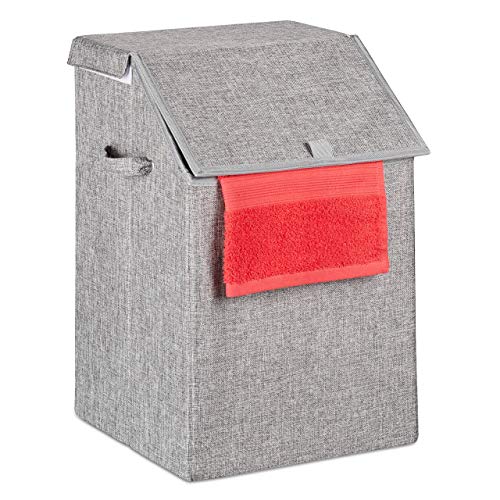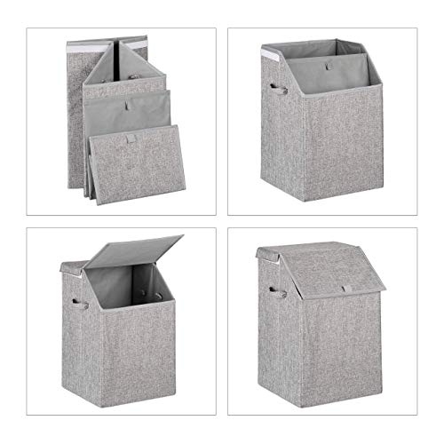 Relaxdays Kosz na pranie, składany kosz na pranie z pokrywką i uchwytami, kwadratowy, 56 l, wys. x szer. x gł. 55 x 37 x 38 cm, szary, 66 x 38 x 38 cm, 10035323_11