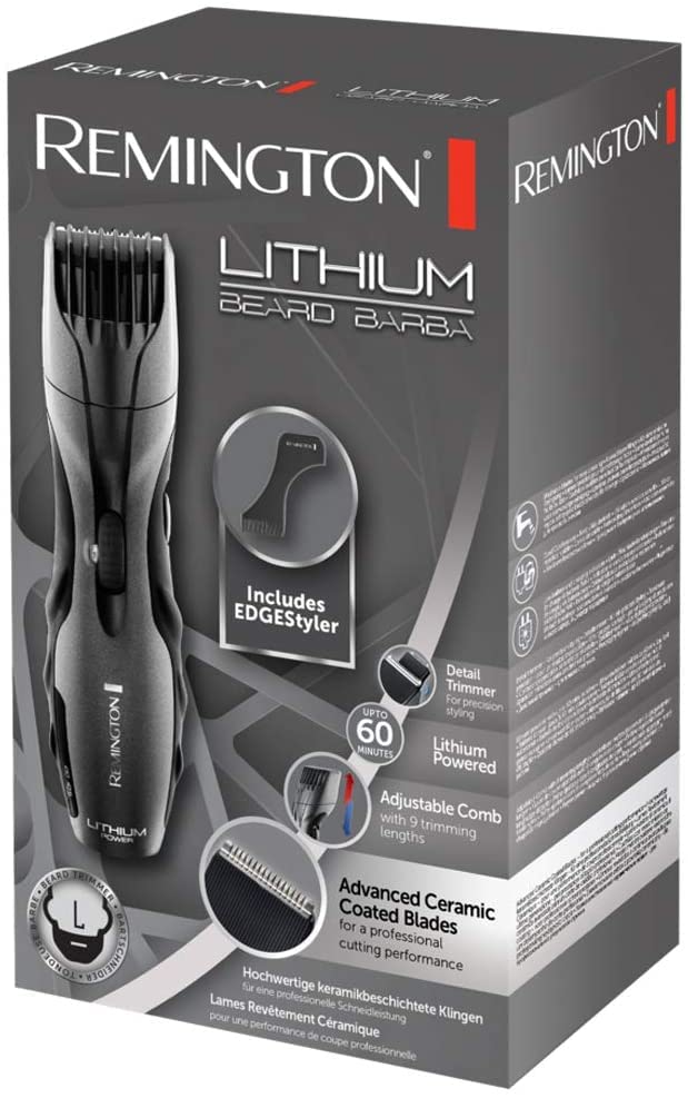 Remington Barttrimmer Herren MB350L (keramikbeschichtete Klingen, Detail- und Langhaarschneider, 1,5-18mm Längeneinstellung, inkl. Bartschablone, Netz-/Lithium Ionen Akkubetrieb) Bartschneider