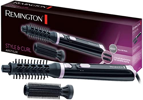 Remington suszarko-lokówka, dwie nasadki szczotkowe (19mm, 25mm), 2 ust. nagrzewania, przycisk zwalniania loków, obrotowy przewód 1,9m, moc 400W, czarna, Style&Curl AS404
