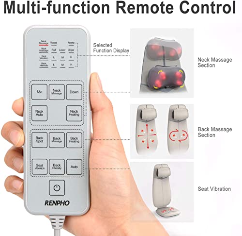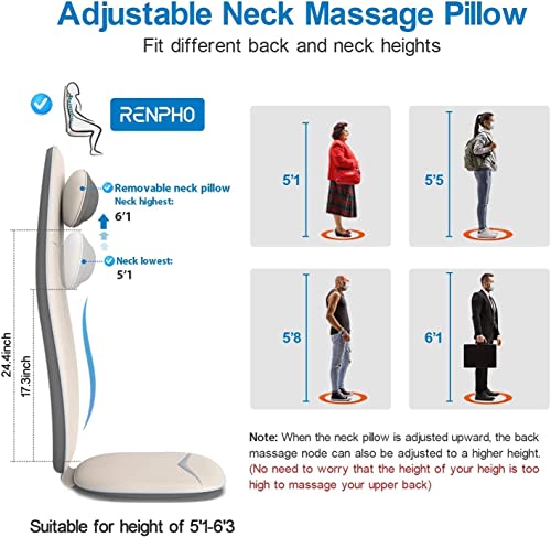 RENPHO Rückenmassagegerät, Shiatsu Massageauflage mit Wärmefunktion und Vibrationsfunktion, Höhenverstellbarer und S-förmiges Massageauflage, Elektrisches Massagegerät für Nacken und Schulter, Weiß