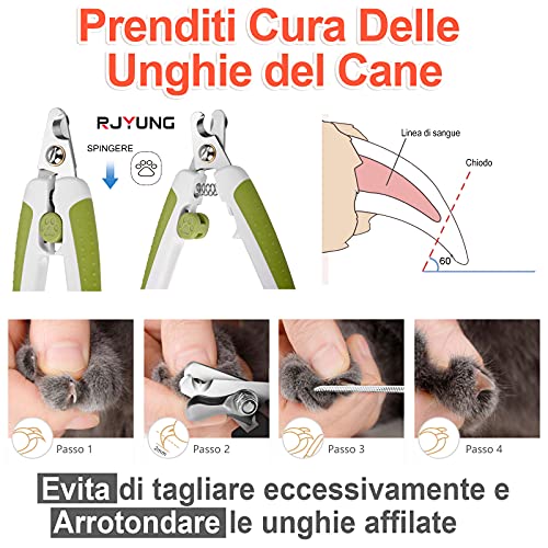 RJYUNG Obcinacz do paznokci dla psów z pilnikiem, obcinacz do paznokci dla małych i średnich zwierząt, ochrona i komfort, z narzędziem do usuwania włosów i usuwania włosów.
