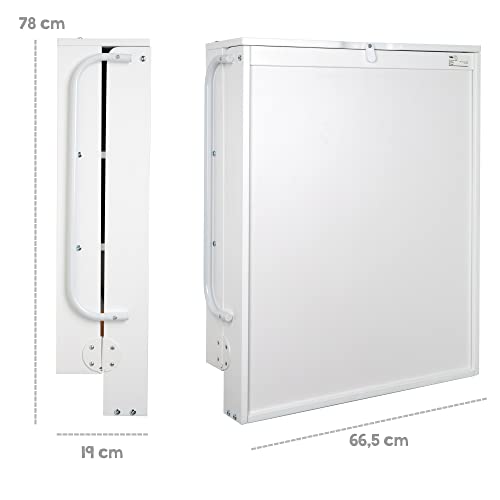 Składany regał na kółkach jest dostarczany wraz z podkładem do przewijania. Dzięki bocznej ochronie regał zwijany na ścianę od urodzenia do 15 kg jest bezpiecznym miejscem do przewijania. Powierzchnia maty jest wykonana ze zmywalnej mieszanki bawełny (65% poliester i 35% bawełna) i pokryta poliuretanem bez ftalanów. Stół można łatwo otwierać/zamykać jedną ręką i dzięki zawiasowi amortyzującemu przesuwa się delikatnie i bezpiecznie do góry i do dołu. Przegródki regałowe i górna półka na tylnej ścianie regału ściennego zapewniają dużo miejsca na potrzebne, które można bezpiecznie i dobrze schować również podczas podnoszenia. Składany regał nawijany jest zaprojektowany i wyprodukowany zgodnie z aktualnymi standardami bezpieczeństwa. Wszystkie zastosowane materiały są certyfikowane i są regularnie sprawdzane.