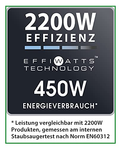 • Effizient wie ein 2100 Watt Staubsauger: Die fortschrittliche Zyklontechnologie mit hoher Luft-/Staub-Trennung ermöglicht eine ausgezeichnete Reinigungsleistung mit nur 500 Watt, wie bei 2100 Watt