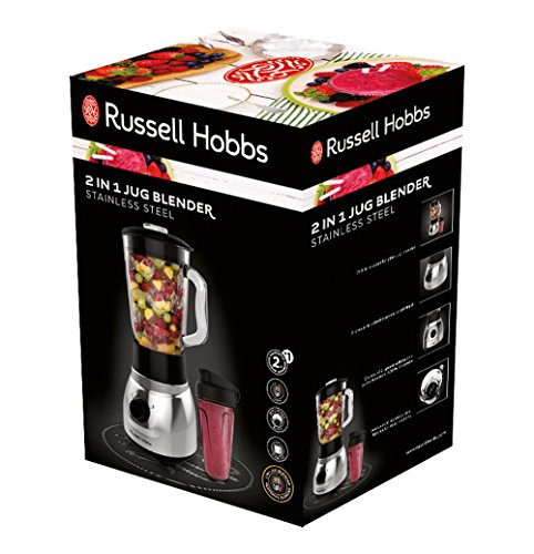 Russell Hobbs Standmixer 2-in-1 [1,5l Glasbehälter Mixer & 0,6l Mini Smoothie Maker -To-Go-Trinkflasche inkl. Deckel] Spülmaschinenfest, Impuls-/Ice-Crush Funktion, Steel 23821-56[Exklusiv bei Amazon]