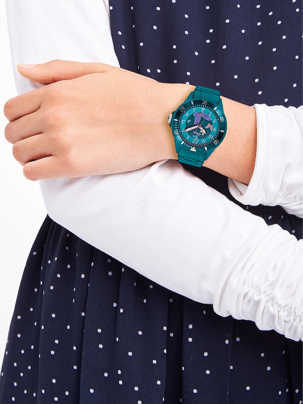 - Grünes Ziffernblatt mit Indexen und bunten Schmetterlingen