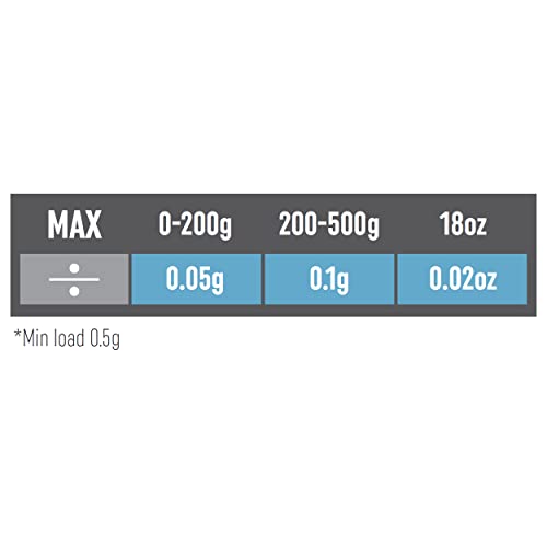 • Designed to weigh out small, precious items with ultimate precision, the small scale weighs a max 500g in precise 0.05g increments.