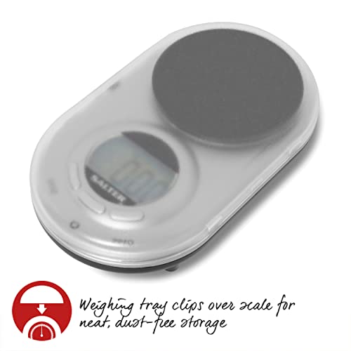 • The platform from the micro pocket scale neatly clips over the scale for a smart storage solution, to fit easily in your bag or pocket.