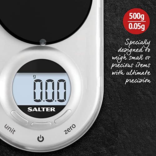 Salter 1260 SVDRA Precision Electronic Scale, Micro Pocket Scales, Max Capacity 500 g, Measures in 0.05 g Increments, Neat Storage, Large LCD Display, Compact, Discreet Design, Metric/Imperial