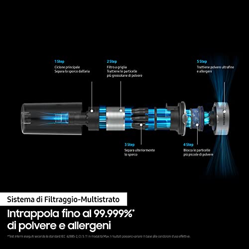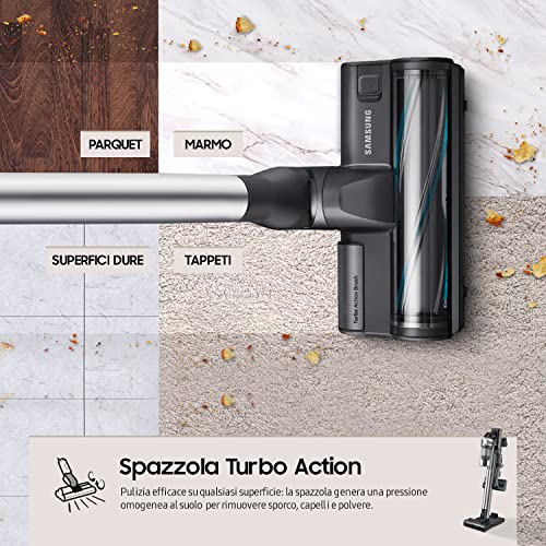 Samsung Jet 90 Complete Vs20R9046T3/Et, Bezprzewodowy Odkurzacz Miotła Elektryczna Akumulator, Bez Worka, Moc 200W, 7 Akcesoria W Zestawie, Srebrny Czarny, ‎25 x 113.6 x 21.5 cm; 11.2 kg