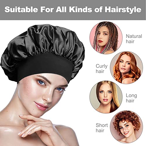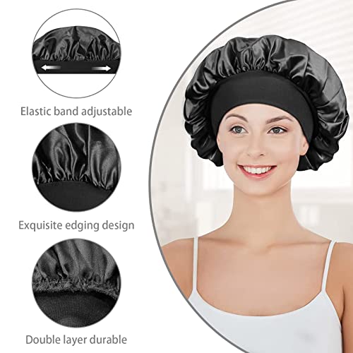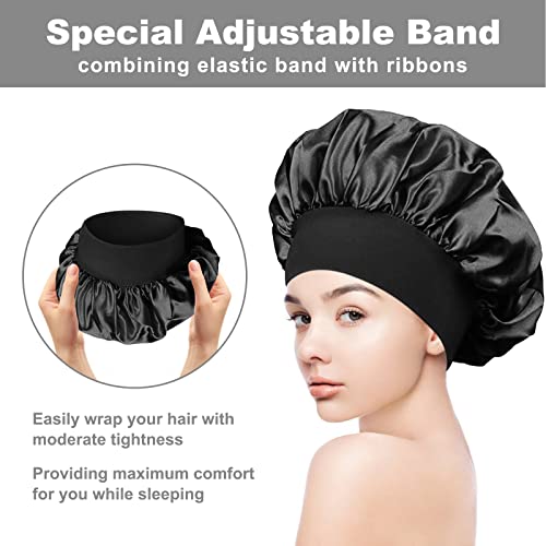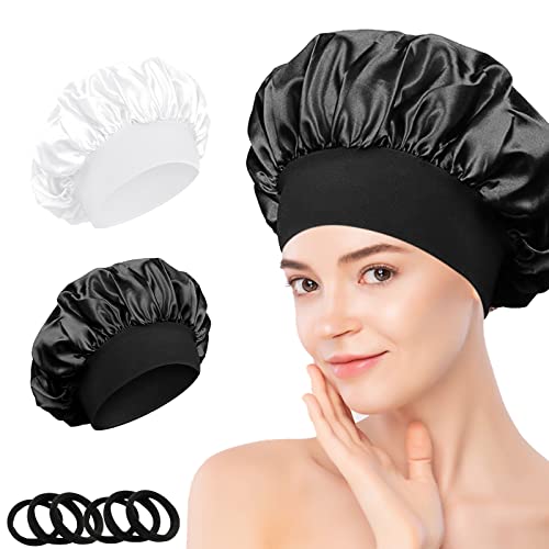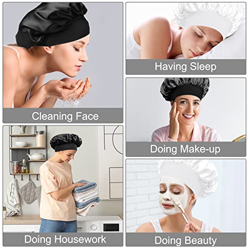 Satynowa czapka do spania, 2 szt., jedwabna czapka nocna, bonnet, regulowana do spania, pielęgnacja włosów, główne zastosowanie dla kobiet i dziewcząt, kręcone włosy, kolor czarny i biały