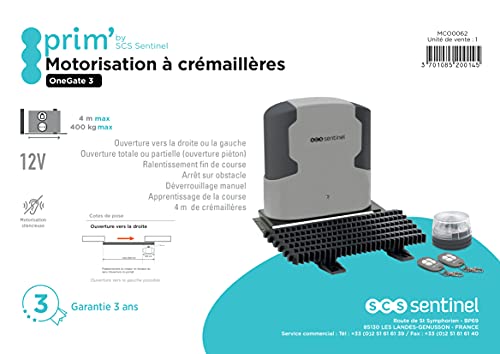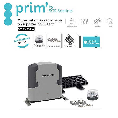 SCS Sentinel – MCO0062-12V Schiebetorantrieb – 2 Fernbedienungen, Zahnstangen und Blinklicht – Torlänge 4 Meter und Gewicht 400 kg maximal – OneGate 3