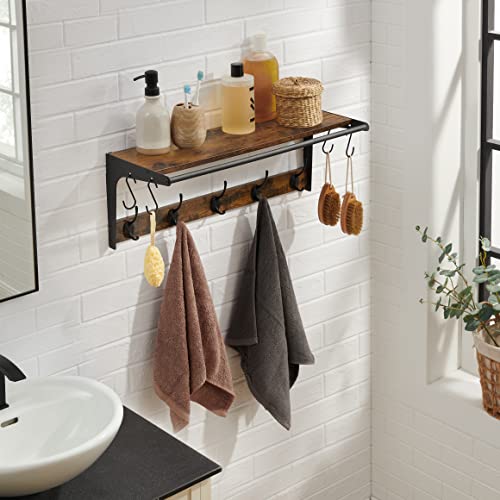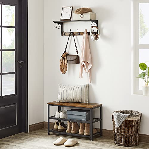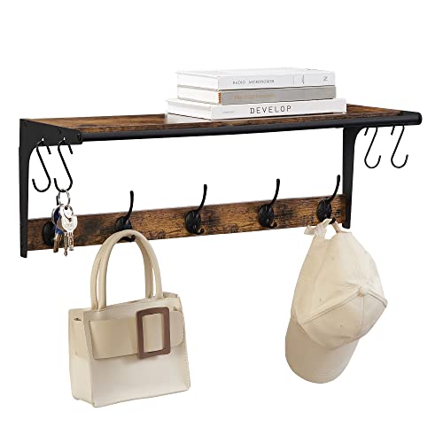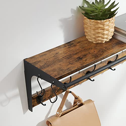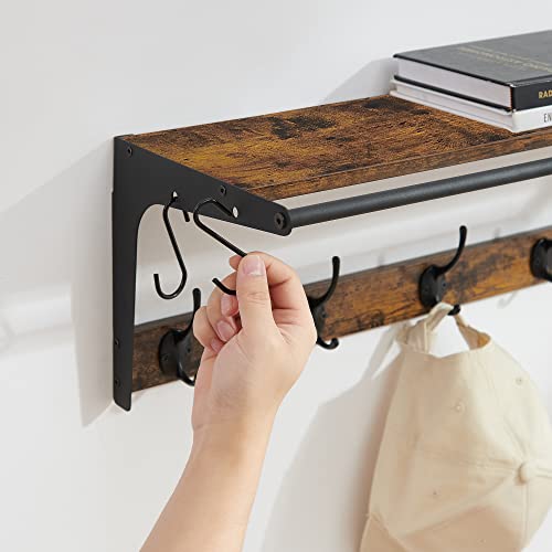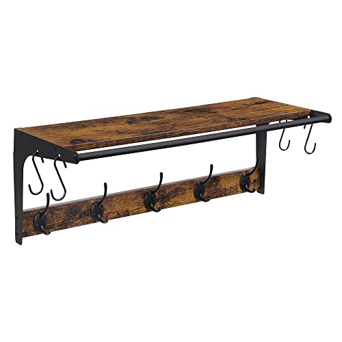 SEGENN Luksusowy wieszak ścienny z 9 obcasami, stojak na ubrania, regał metalowy i drewniany, 61 x 24 x 22 cm, do przedpokoju, łazienki, salonu, brązowy, czarny