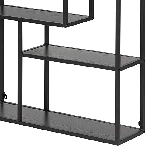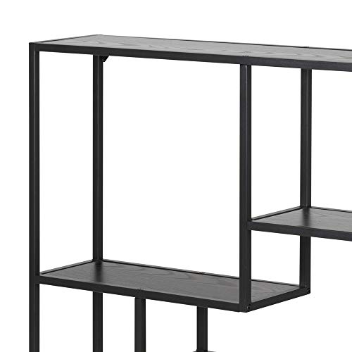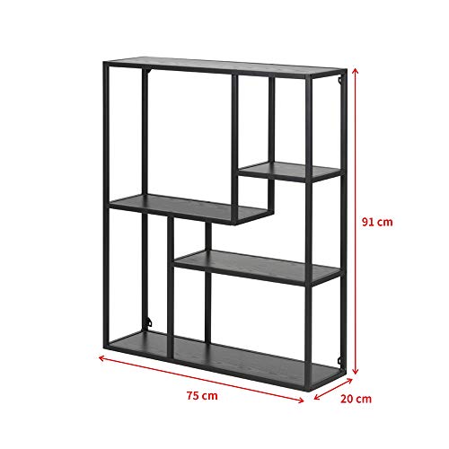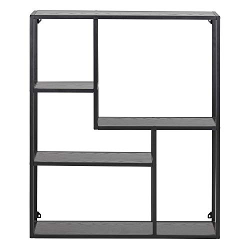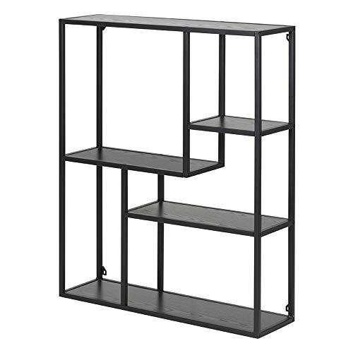 Selsey Krapina – regał wiszący z metalowym stelażem – ciemnoszary wygląd drewna, czarny – asymetryczny 91 x 75 cm