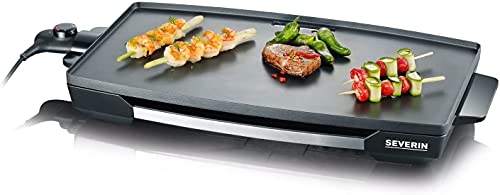 Einzelheiten: Produktbeschreibung Ideal für japanisches „Teppan Yaki” und Abendessen für die ganze Familie – der SEVERIN TischgrillRohes, mariniertes Fleisch, Gemüse und Fisch auf den Tisch stellen, SEVERIN Tischgrill anmachen und das Schlemmen kann beginnen. Ob mit Zutaten wie beim klassischen Grillen oder nach Art des japanischen „Teppan Yaki”, auf der XXL Gussplatte findet jeder einen Platz für seine Lieblingsspeisen, die nach Lust und Appetit zubereitet werden können. Ein praktischer Temperaturregler mit Kontrollleuchte an der abnehmbaren Zuleitung ermöglicht Kontrolle und Sicherheit. Nach dem Festmahl kann der Elektrogrill einfach gereinigt werden, denn die große Grillfläche ist antihaftbeschichtet. Zusätzlich kann die Fettauffangschale einfach herausgenommen und abgewaschen werden. Die Front mit Edelstahlblende und das schwarze Gehäuse runden das Erlebnis ab.Die Produktvorteile im Detail:Für Fleisch, Fisch, Gemüse und „Teppan Yaki”XXL Gussplatte mit ca. 1933 cm²AntihaftbeschichtungAbnehmbare FettauffangschaleFront mit EdelstahlblendeAbnehmbare ZuleitungEinstellbarer TemperaturreglerKontrollleuchteLeistung: ca. 2.200 WFarbe: schwarzMaße Grillfläche: ca. 59,5 cm x 34,5 cmGewicht: ca. 3,1 kg Markenbeschreibung Severin Als Deutsche Traditionsmarke produziert und verkauft SEVERIN seit über 65 Jahren hochwertige Elektrogeräte, die das tägliche Leben einfacher gestalten. Und steht so seit über 125 Jahren für Zuverlässigkeit und Innovation. Das bedeutet German Quality durch und durch: ob im Design, in der Produktgestaltung und –entwicklung oder in der Materialauswahl und -verarbeitung.