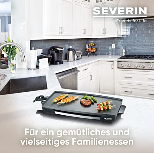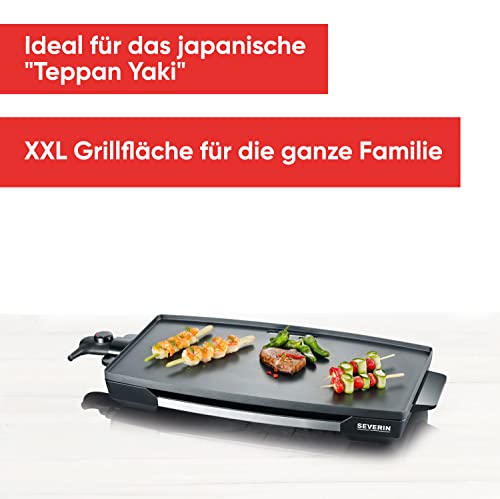 SEVERIN Tischgrill für Fleisch, Fisch und Gemüse, XXL Teppan Yaki Platte mit Antihaftbeschichtung, Elektrogrill mit Fettauffangschale und Temperaturregler, schwarz, KG 2397