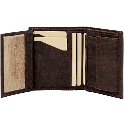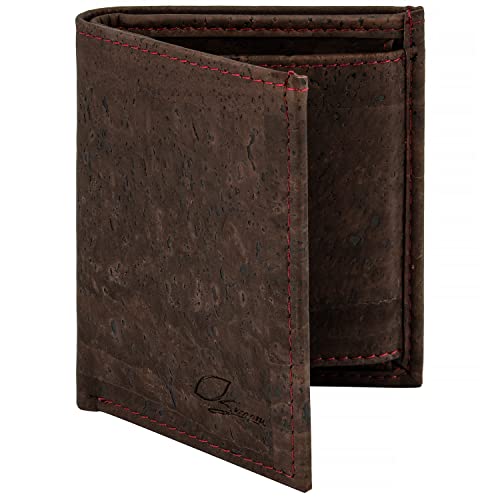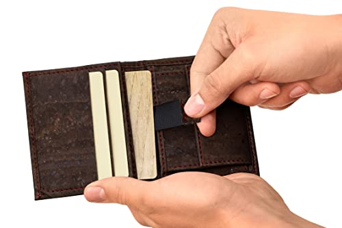 Portfel z korka, Slim Wallet z klapką na karty, uniseks, mini portfel, z ochroną RFID, mały, kompaktowy i wegański, brązowy, Minimalistyczny