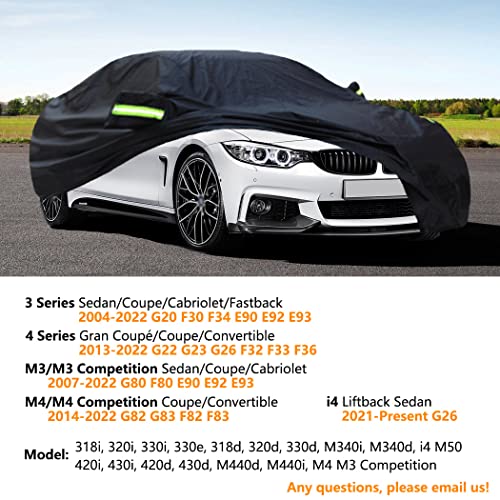 Pokrowiec samochodowy Kompatybilny z BMW 3er(04-22) 4er(03-22) M3(07-22) M4(14-22) Sedan/Gran Coupe/Coupe/Cabrio, Wodoodporny pokrowiec na każdą pogodę dla samochodów, wiatroszczelne pokrowce