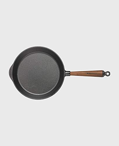 Einzelheiten: Gusseisen ist eines der ältesten Materialien zum Kochen und Braten. Das Brataroma ist unvergleichlich und kann mit keiner anderen Pfanne so echt erzeugt werden, wie in einer echten Eisen Pfanne.Durch den Stahlgriff können diese Pfannen auch im Backofen eingesetzt werden. Gusseisen Pfannen sind besonders zu Braten auf hohen Temperaturen geeignet. Nach wenigen Bratvorgängen entwickelt die Pfanne eine braune Patina, die das besondere Brataroma erzeugt und einen Antihaft – Effekt bewirkt. Diese Patina darf bei Gusseisen Pfannen nicht durch übertriebene Reinigung entfernt werden.Skeppshult Gusseisen Pfannen sind ideal zum Braten auf Induktionsherden geeignet.Da für diese Pfanne Rohgusseisen verwendet wird ist es möglich, dass diese bei falscher Behandlung rostet. Rost kann jedoch leicht vermieden oder entfernt werden.Bedienungs- und Pflegehinweise: Zum Braten und Anbraten kann Speiseöl, Butter oder Magarine verwendet werden.Gußeisen ist ein natürliches Produkt, das nur einfache Pflege ohne Chemikalien (Spülmittel, etc.) benötigt. Gusseisen Kochgeschirr wird nur mit heißem Wasser und der Geschirrbürste gereinigt. Danach sollte die Eisenoberfläche gut abgetrocknet und mit Speiseöl eingerieben werden. Zum Reinigen in der Geschirrspülmaschine ist Gusseisen nicht geeignet.Gusseisen sollte nicht zur Aufbewahrung von Speisen verwendet werden, da hierdurch Rost entstehen kann.