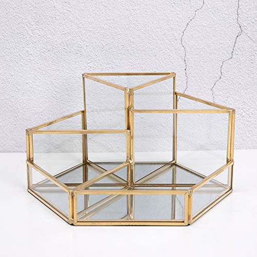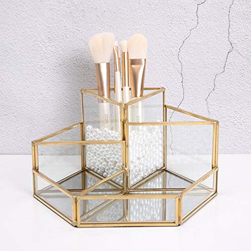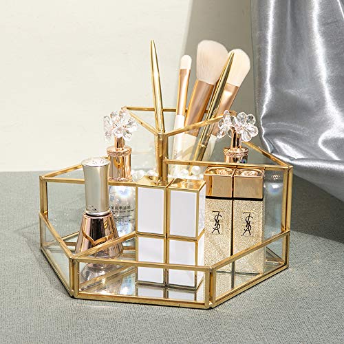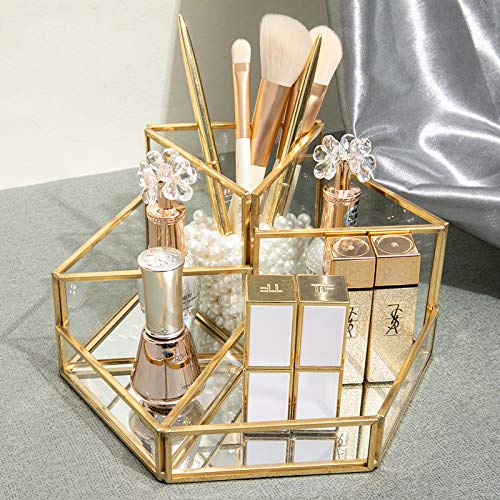 Organizer do makijażu Beauty Organizer, czarne szkło, uchwyt na pędzle, pudełko na kosmetyki, dekoracyjna taca (kolor złoty A)