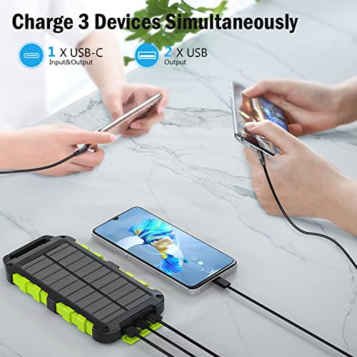 • Podwójne wyjście/wejście: nasza ładowarka słoneczna zapewnia 2 wyjścia USB (2.1A) mogące ładować 2 urządzenia z pełną prędkością w tym samym czasie. Zapewnia kabel do szybkiego ładowania USB-C (3A) i ładowanie słoneczne (ładowanie słoneczne jest rozwiązaniem awaryjnym)